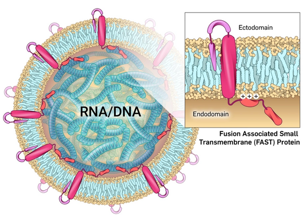 Fusion Associated Small Transmembrane (FAST) proteins catalyze the mixing of lipids between nanoparticles and the plasma membrane of target cells.